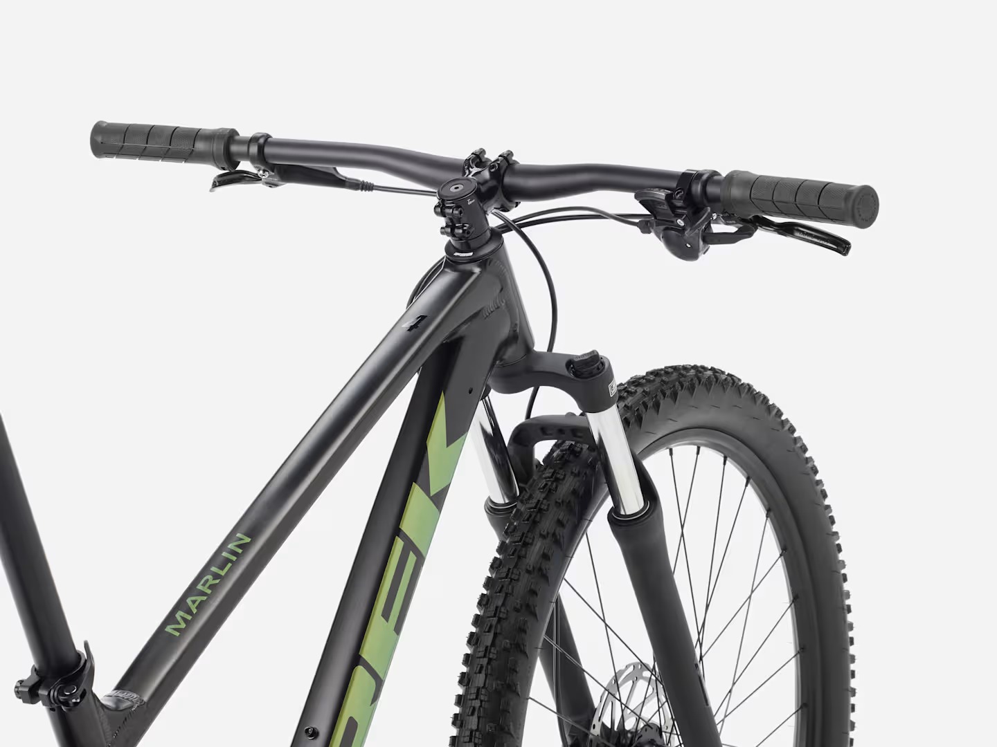 Os freios a disco hidráulicos Shimano MT200 com rotores de 160mm oferecem frenagem potente, progressiva e confiável em qualquer condição climática — seja na chuva, na lama ou no asfalto seco. Dessa forma, a Trek Marlin 4 garante segurança total para o ciclista, independentemente do terreno.