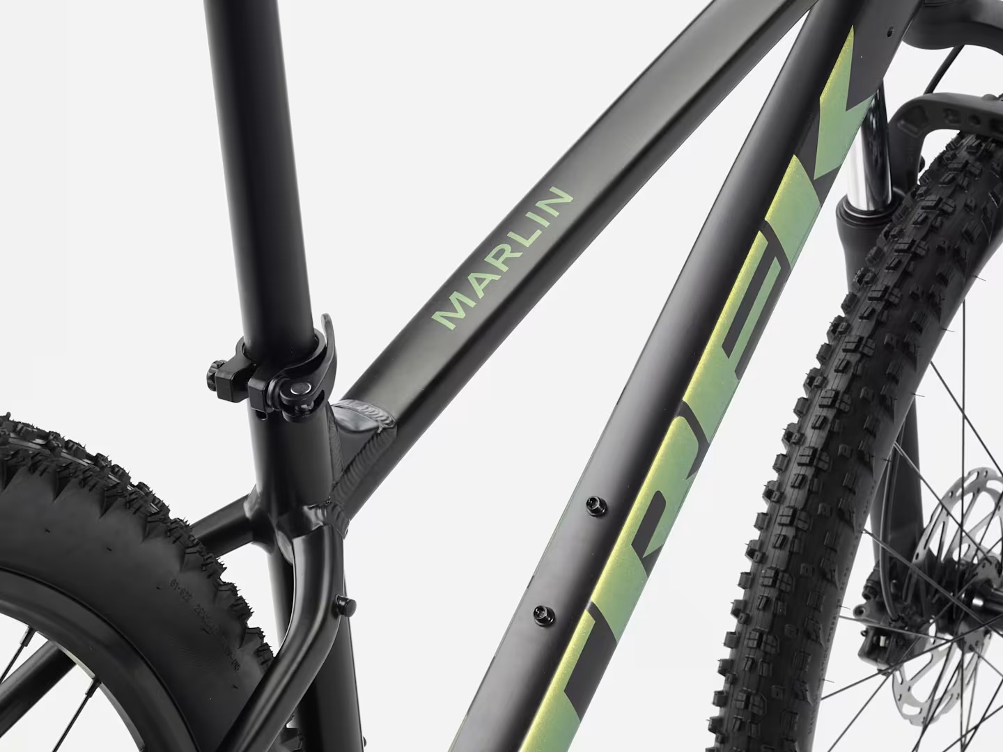 A Trek Marlin 4 3ª Geração é a mountain bike hardtail perfeita para quem busca versatilidade e confiança em qualquer terreno. Seu quadro em Alumínio Alpha Silver conta com geometria moderna de trilha, roteamento interno de cabos e pontos de fixação para bagageiro e descanso lateral, tornando-a ideal tanto para o uso urbano quanto para aventuras off-road. O sistema inteligente Smart Wheel Size adapta o tamanho das rodas ao quadro (29″ nos tamanhos M, MG e G), garantindo equilíbrio, controle e uma pilotagem mais intuitiva.